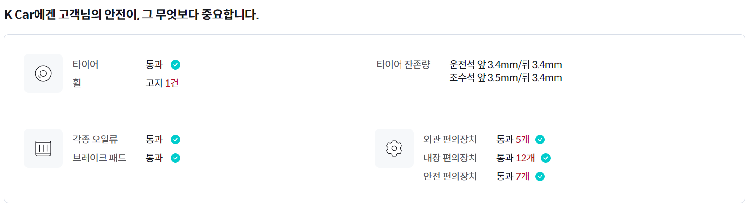 K Car의 장단점이 명확하게 나타나 있습니다. 자동차에 대해서 잘 모르거나 허위매물에 대한 걱정이 많으신 분께서는 조금 더 비싸더라도 안전하게 K Car에서 매매를 진행하시는 것을 추천드립니다.
